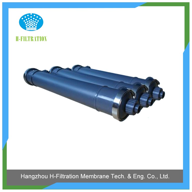 本產品為外壓式超濾膜,根據膜組件外壁的箭頭方向, 箭頭指向的端口是超濾透過液出液口,下部是電泳漆原液進液口,側面上面的口為電泳漆回流口,側面下面的口可以堵住不用;在電泳漆使用過程中可以使用水沖洗,超濾透過液沖洗,沖洗時從膜的回流口進入,原液進入口排出即可。當沖洗效果不是很好時,可以用有機酸和溶劑浸泡,循環沖洗清除膜中的油漆,從面恢復膜的通量。